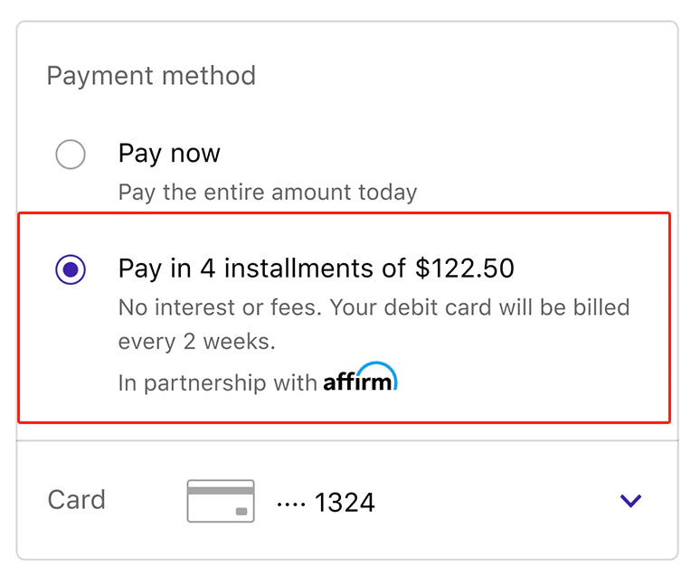 When using Shop Pay installments, there will be no impact to your credit score since Affirm doesn't conduct a hard credit pull or report to the credit bureaus.