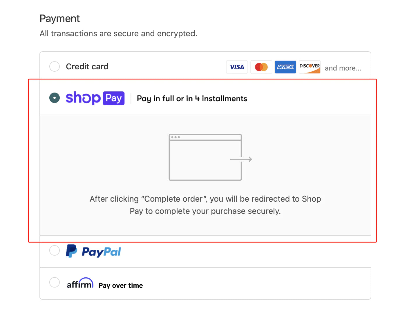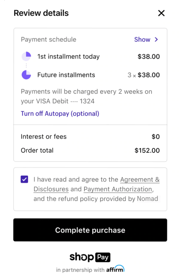 The installments option on Shop Pay is available on all major debit and credit cards.